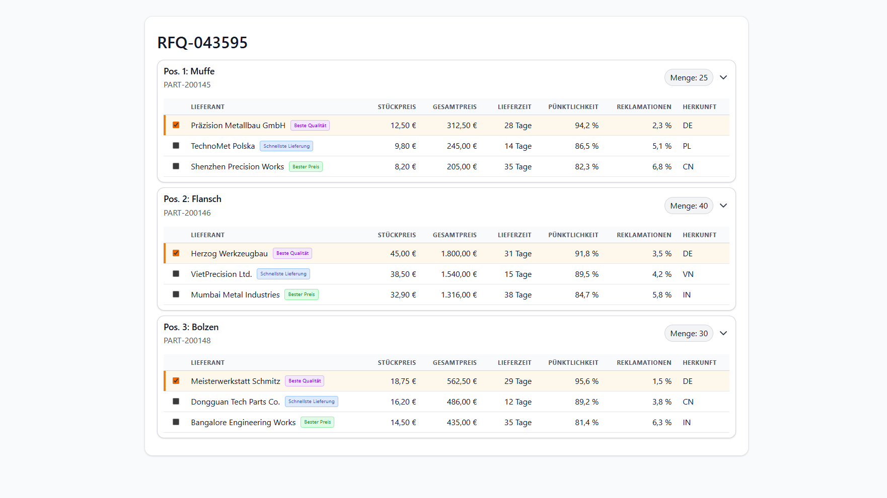 Strukturierter Preisvergleich inkl. Abweichungsanalyse